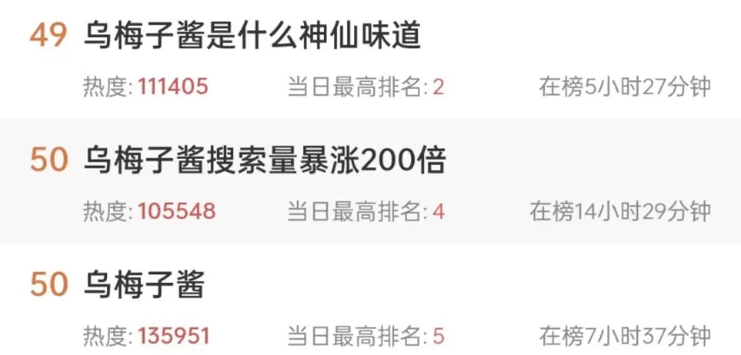 如果說熱搜之前,《烏梅子醬》的熱度還只是停留在粉絲圈層、情人節限定,那麼在熱搜之後,這首歌正式迎來了熱度的集中爆發和全面開花,受到了來自全網、全媒體、全社會的廣泛關注和討論,成為開年現象級爆火的音樂作品。