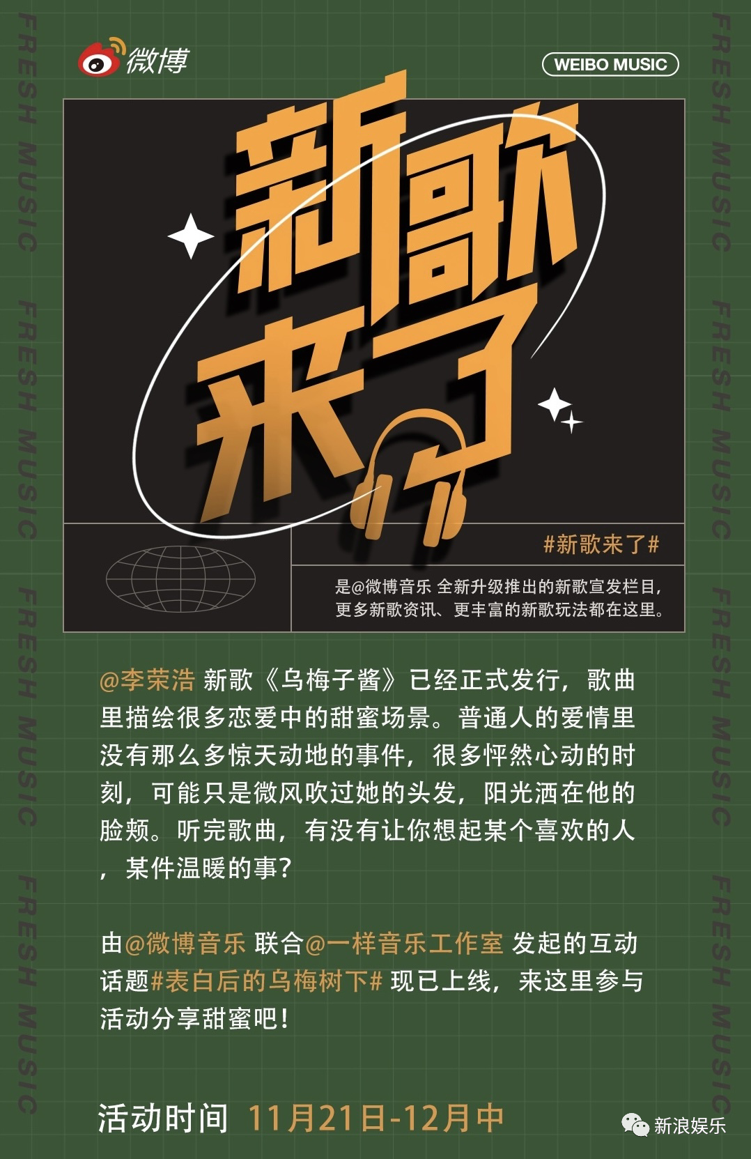 @微博音樂 #新歌來了#也聯合@一樣音樂工作室 發起互動話題#表白後的烏梅樹下#