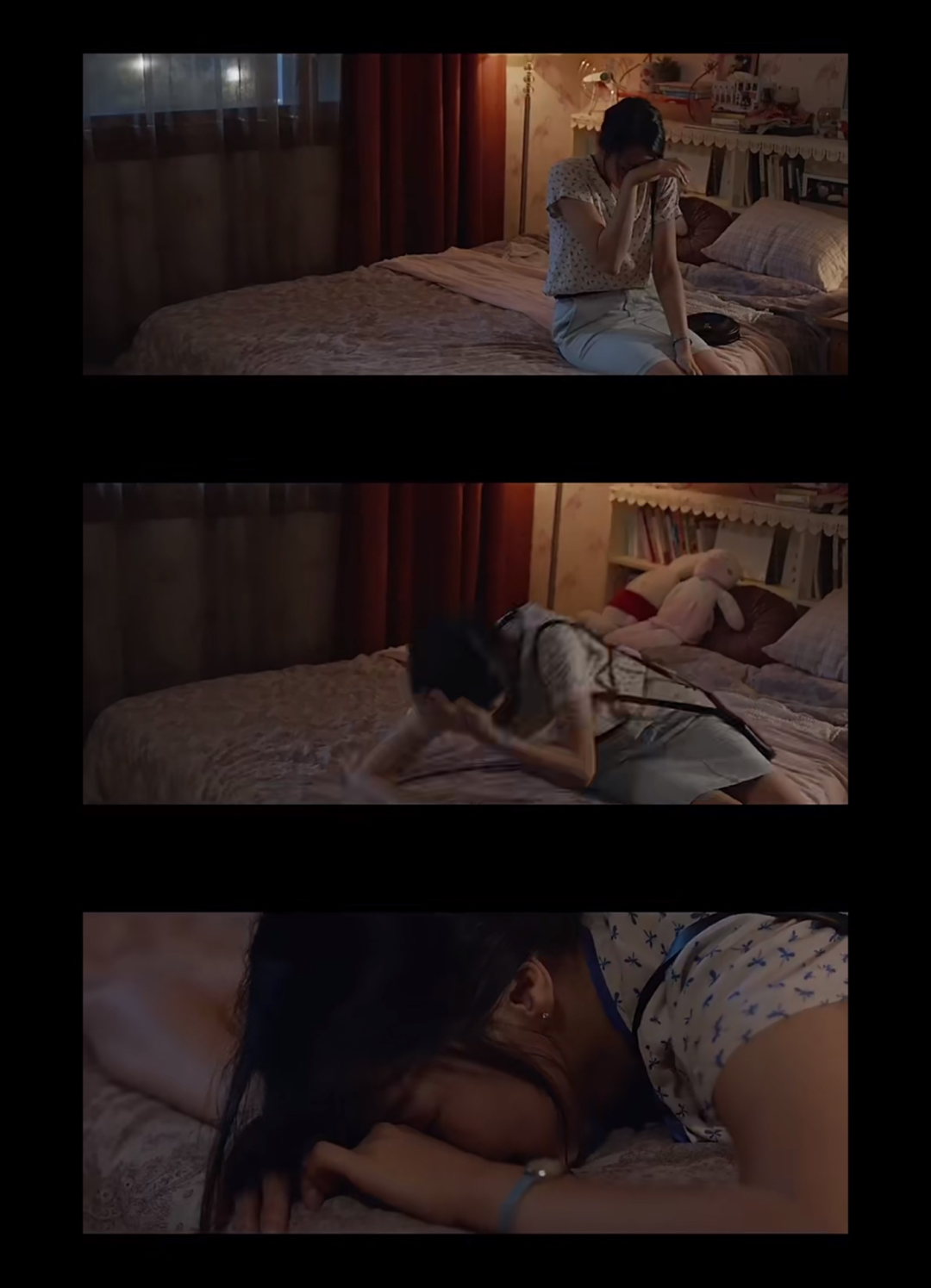 但一個說完就情難自抑掩面哭泣,