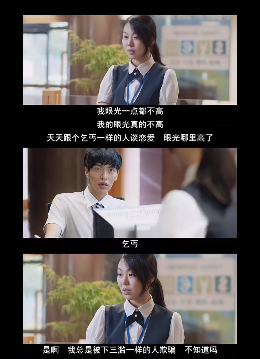 “我眼光一點都不高啊,我天天跟乞丐一樣的人談戀愛,眼光哪裡高了?”