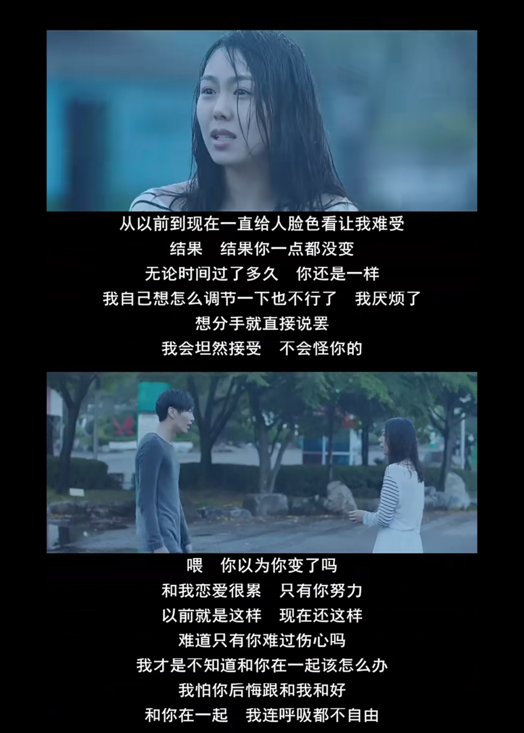 決定複合之前,男女主在車站有一段對話,他們努力回憶第一次分手時吵架的原因,卻怎麼都想不起來。