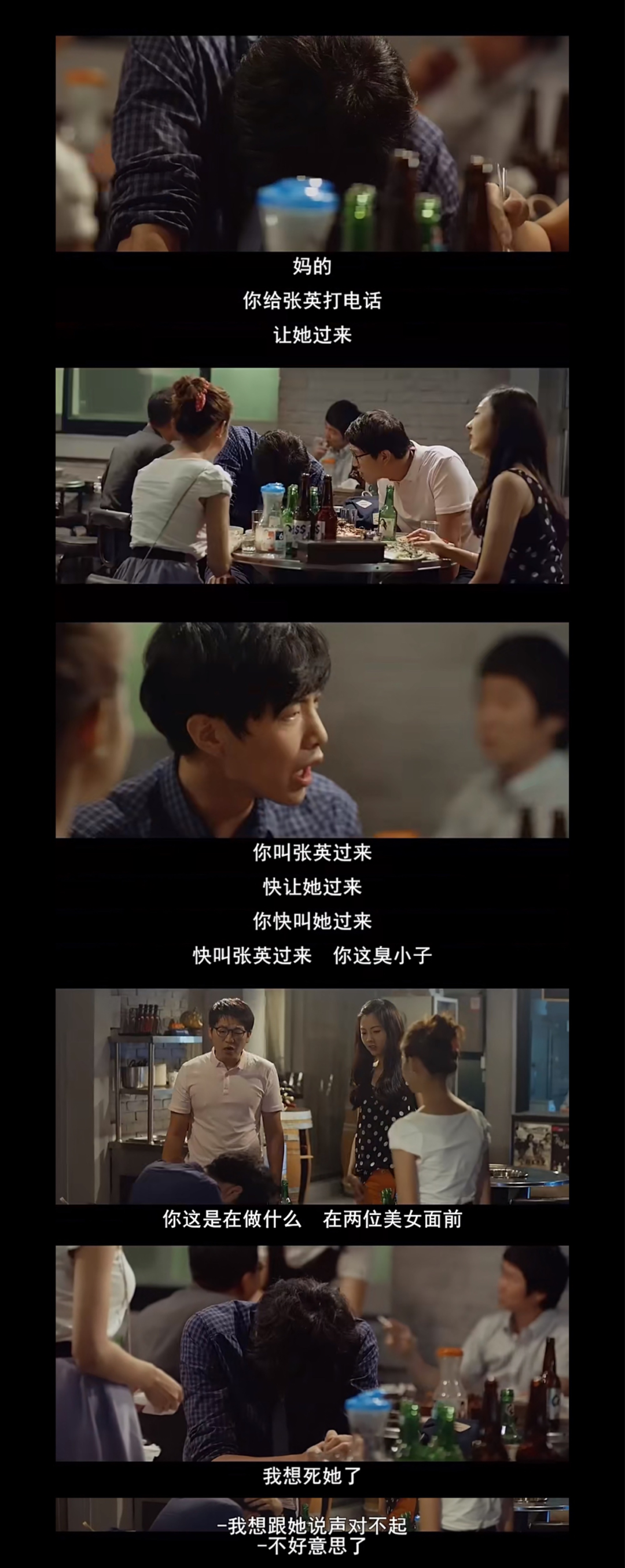 另一個酒後失態,發洩一通後伏在桌子上喃喃著“我好想張英”。