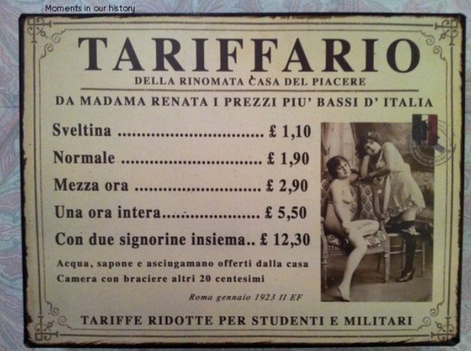 首頁羞答答的冷知識9個 羞答答的冷知識9個作者: Admin / 2023 年 3 月 4 日 01 維多利亞時代的妓院蠟燭計時器 客戶付費後,插入一根蠟燭 7分鐘後,蠟燭燃盡 “有請下一位!” 02 獵物瞳孔一般呈水平狀,能夠看得更廣闊的地面,便於找到逃生或躲藏的地方。 豎直的瞳孔,一般是精確尋找目標的獵手 03 龐貝古城辣眼壁畫 古人豐富多彩的生活不輸當今! 04 河豚在掙扎時會釋放出一種毒素,用於麻痺攻擊者。 但這種毒素會使海豚爽翻天,所以海豚經常逗弄河豚來過癮。 05 阿特拉斯蛾(最大蛾類) 幼蟲有口器 成蟲口器退化 無法進食 壽命不到十天 雄蛾交配後很快就會死去 06 馬丘比丘的石牆 最大石塊重達40噸 岩石之間連一張紙都插不進 07 金錢活板門蛛 腹部像一枚硬幣 受到威脅時 它能用腹部末端的硬化圓盤塞住入口抵抗掠食者 08 一隻手的血管 09 1923年羅馬一家妓院的價目表 項目、價格: 你自己翻譯 老王翻譯小字部分: 免費提供水、肥皂和毛巾 帶火爐的房間另加20美分 學生和軍人價格從優!