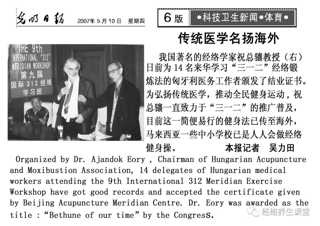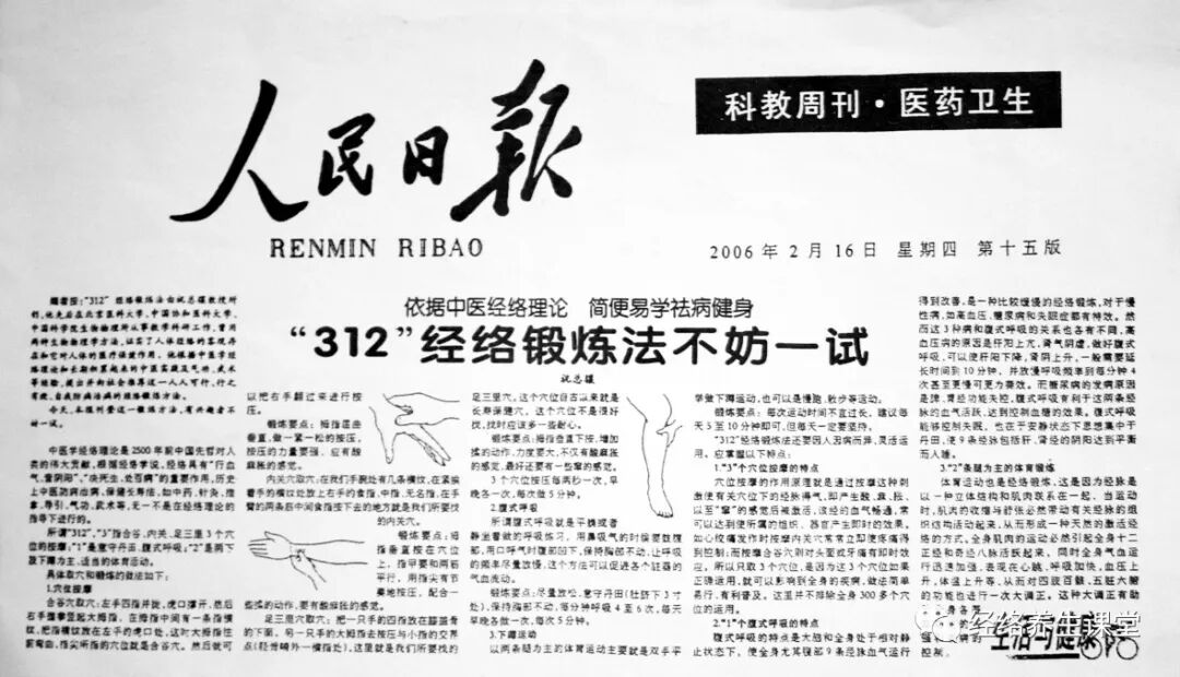 《人民日報》《312經絡鍛鍊法不妨一試》2006年2月16日