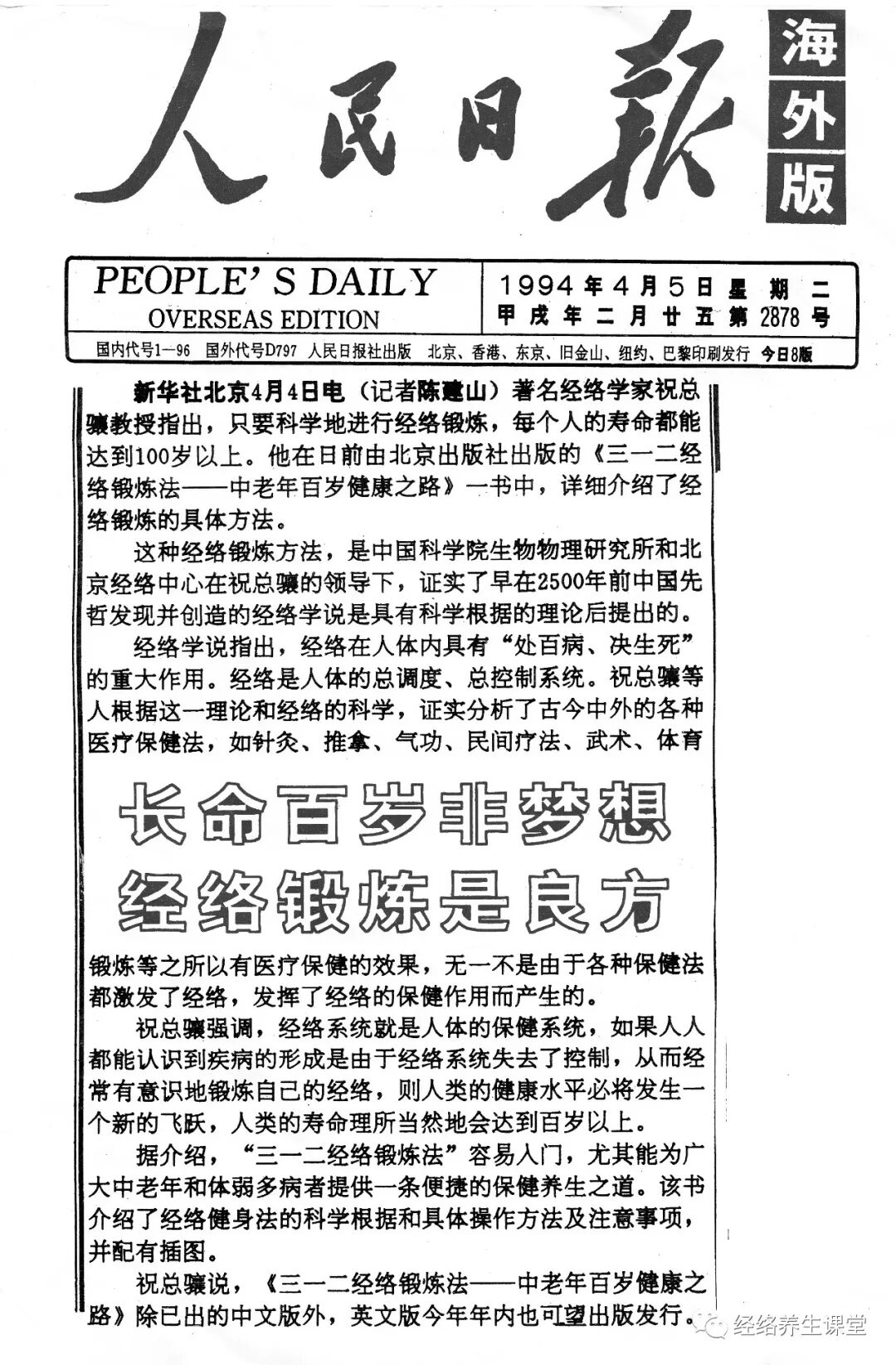 《長命百歲非夢想 經絡鍛鍊是良方》《人民日報》(海外版)1994、4、5