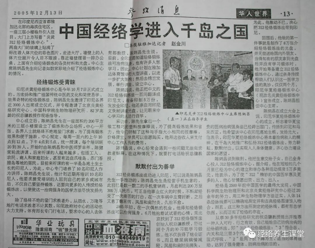 《參考消息》《中國經絡學進入千島之國》2005、12、13