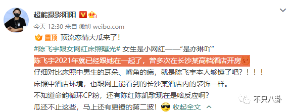 好在一個懂瓜呱跑了,但另一個八卦號@超能攝影陽陽 為枯燥的內娛站了出來,他直接爆出阿瑟陳飛宇跟女網紅的床照……