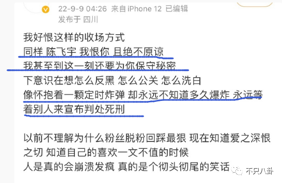 其實有陳飛宇大粉去年四月就疑似知道了這件事,一度鬧著想脫粉,但還是保守住了這個秘密。粉絲覺得,這件事就是抱著一顆定時炸彈,讓人心裡很不安。