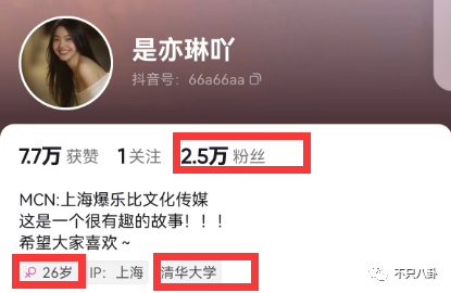 她的社媒信息顯示,本人今年26歲,畢業於清華大學,現有粉絲2.5W。