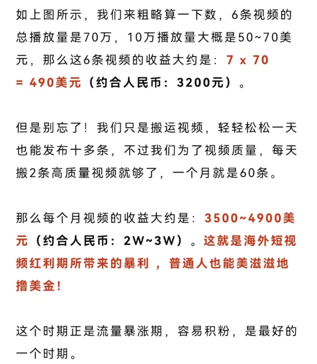 海外短視頻搬運變現真的爽,在這個國內人均博主的卷王競爭時代,不得不說,外國人的錢真的好賺多了……