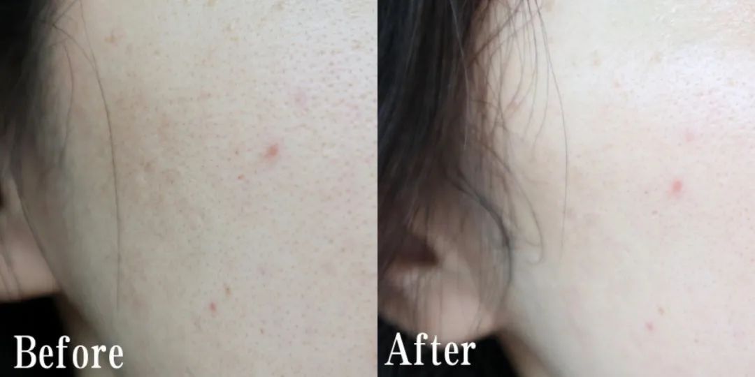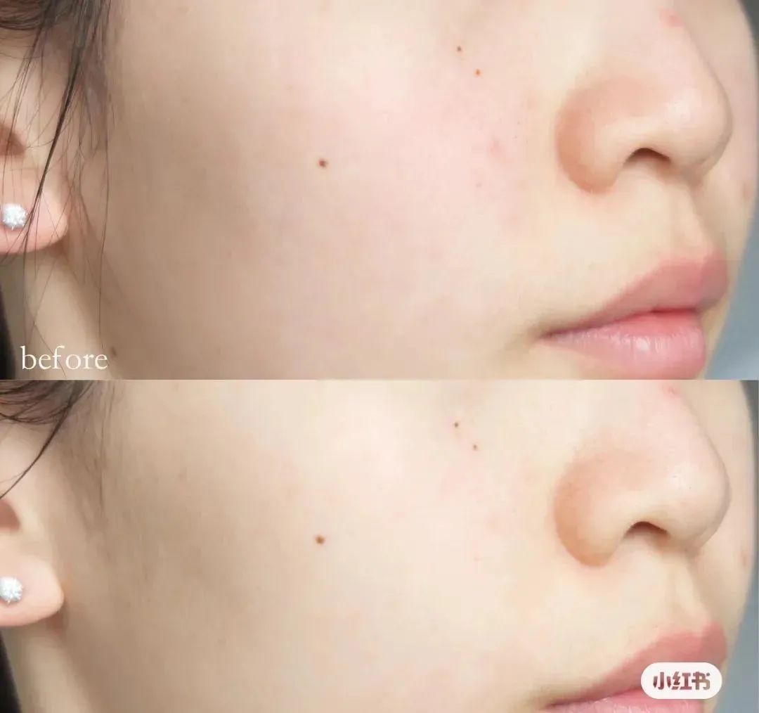 一位妹子分享了塗大紅瓶,塗抹前後的皮膚毛孔明顯縮小,皮膚提亮兩個度,痘印有明顯淡化,強勢安利!!