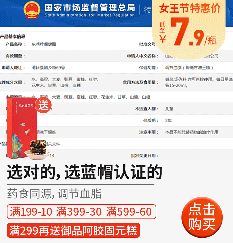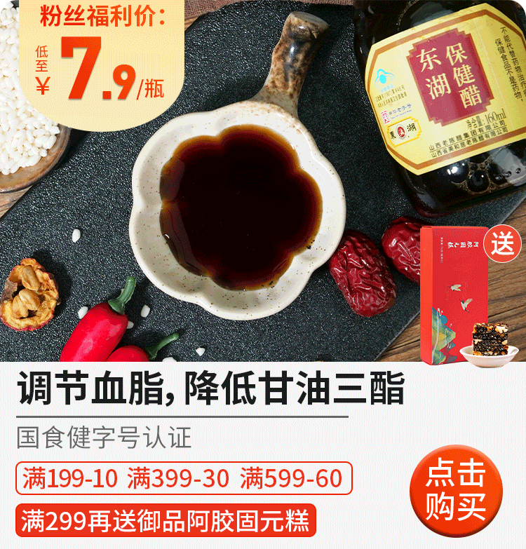東湖保健醋以總酸6度的山西老陳醋為醋基