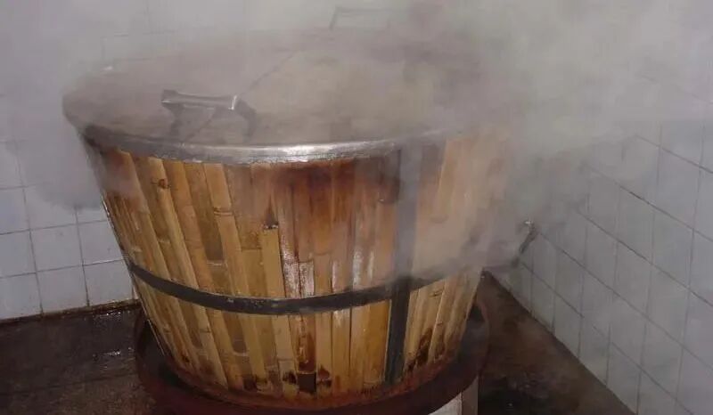 ①蒸。首先在好原料基礎上經過粉碎形成特定大小的顆粒,形成顆粒以後,經過十個小時的潤料再進行蒸