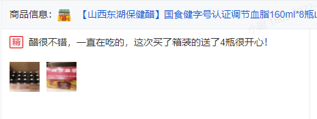 “醋很不錯,一直在吃,買了一箱送了4瓶很開心”