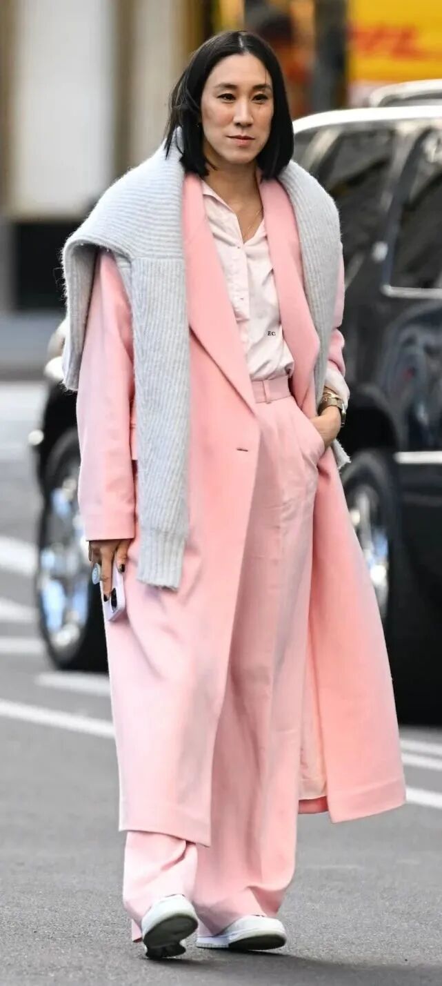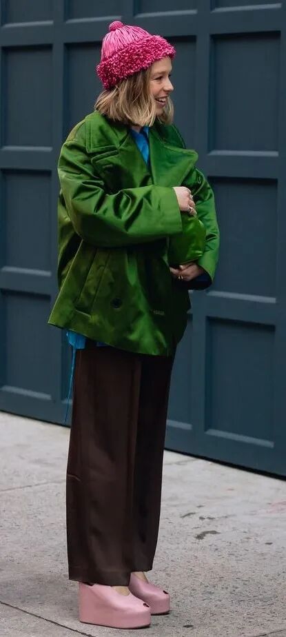 街拍中的時髦人的確很少選擇 “默默無聞” 的基礎色。Pick 跳脫色彩是她們穿基本款但與眾不同的必殺技。