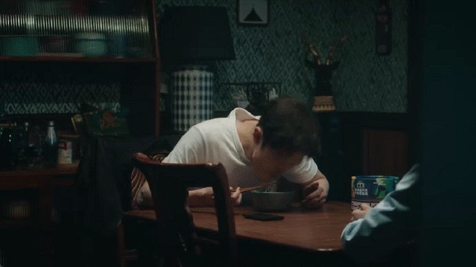 好不容易在回憶殺的時候有些溫情,結果鏡頭一轉,記憶裡本山大叔在狂吸溜面。