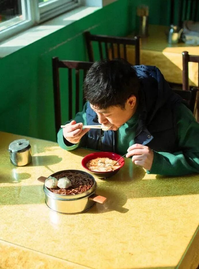 張頌文面對這三份餛飩時,埋頭吃起了自己面前的這碗。