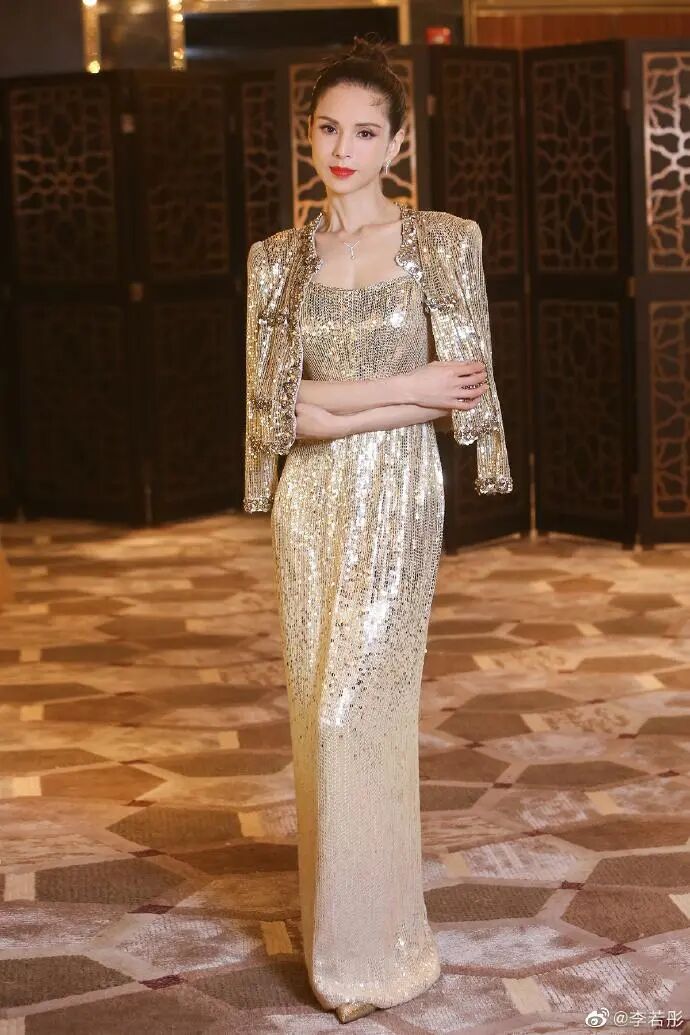 李若彤顏值太抗打!穿亮片抹胸禮服裙身材超火辣,氣質高貴又優雅