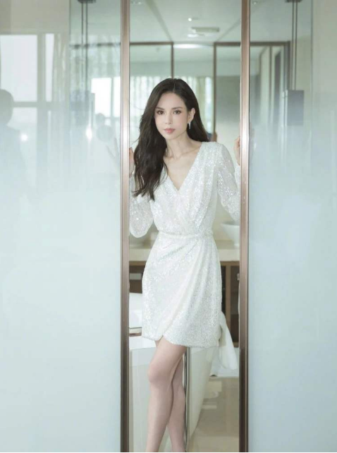 白色的服飾如果和銀色亮片相搭配,立馬就會有一種高貴優雅的感覺。但是,這件亮片連衣裙的設計,相對來說就比較挑膚色。