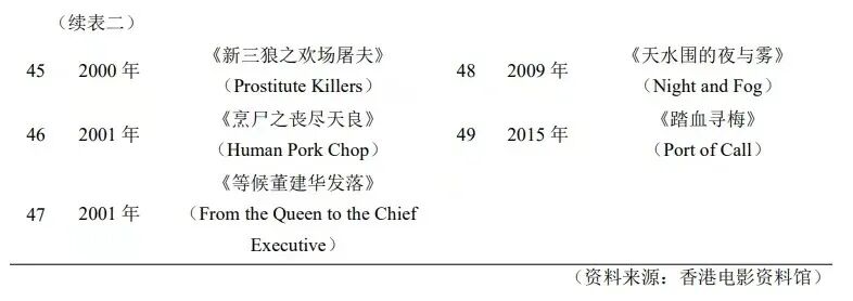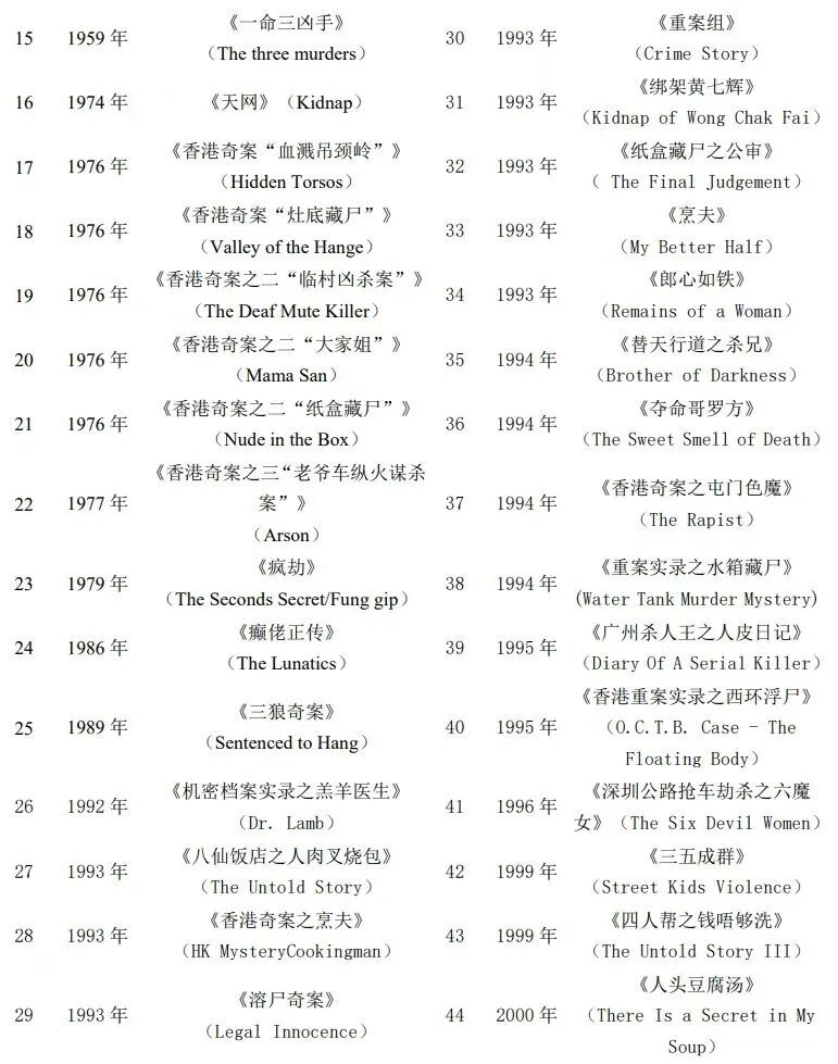 1970年以後由香港奇案改編的電影彙總。作者/徐雪亮,來源/《1970年代以來香港奇案改編電影與本土文化自覺》
