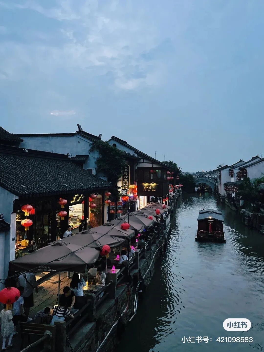 但晚上來這兒的話最適合去河岸邊的清吧坐坐。聽著民謠,吹著晚風,再看烏篷船從面前經過,無論是獨自消遣還是約三兩好友一起敘敘舊,都格外愜意,夜晚和微醺的適配度滿分。