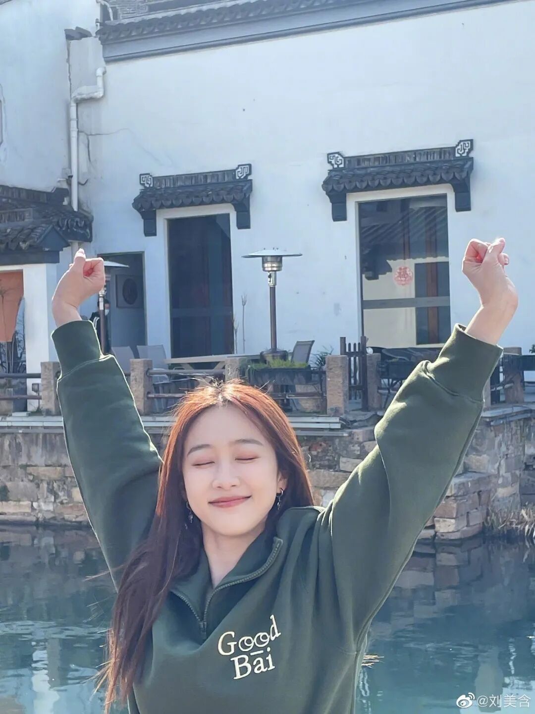 劉美含自帶著小家碧玉的親切感,已經浮現出了詩裡的畫面:“水秀山清眉遠長,歸來閒倚小閣窗”,江南的春天用柔美的詩篇來形容再貼切不過了。