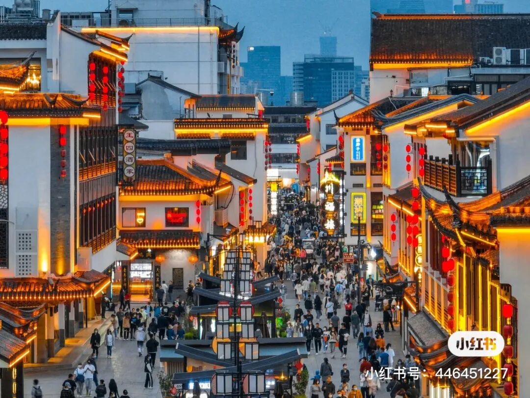 曹雪芹筆下“最是紅塵中一二等富貴風流之地”說的就是這裡,尤其夜幕降臨之後會對這句話更加有感悟。河道兩旁的燈籠高高掛起,華燈初上的景象映紅著整條街道,白牆黑瓦與如織的遊船的倒影也在河面上清晰可見。