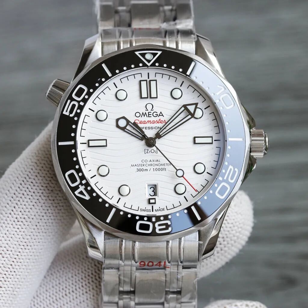 這款海馬系列300米專業潛水錶採用了精鋼錶殼搭配拋光白色陶瓷錶盤,表圈上也裝飾有白色琺琅潛水刻度,潔白乾淨的外觀設計讓人忍不住想起冬天的雪花。錶盤上飾有激光雕刻的波紋圖案,鏤空的時針和分針都覆有白色Super-LumiNova夜光塗層,6點鐘位置設了日期顯示窗口。機芯搭載的是8800至臻天文臺機芯,能夠抵擋15,000高斯的強磁場。