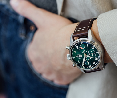 41毫米飛計在外觀上基本延續了前作的經典外觀,錶殼厚度也從15.4毫米縮減至14.5毫米。本次IW388103為我們帶來了全新綠色。綠色作為近年腕錶領域的熱門配色,飛計自然也不甘示弱。腕錶以精鋼打造寬大的錶殼,圓形錶盤上顯示時間、日期、星期以及計時功能,覆蓋藍寶石玻璃表鏡。錶殼內打在一枚性能卓越的自動機械機芯。腕錶使用深棕色小牛皮錶帶。錶款設計精密,典雅卓越。搭載Cal.69385機芯,這枚自產機芯可實現雙向上弦,相較於舊款大大提高了機芯的上弦效率。為此也一改實心底蓋設計,首次將背透玻璃底蓋引入飛行員系列。