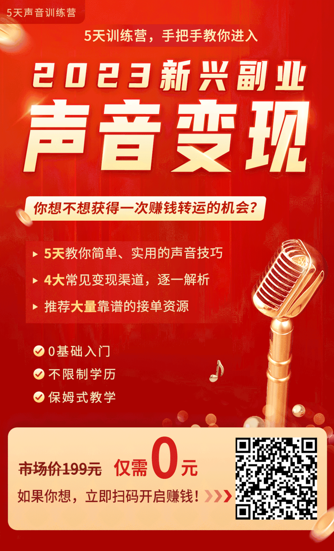 掃描下方海報二維碼,就能免費參與【5天聲音訓練營】,完成學習並考核合格就能獲得接單資源分享。