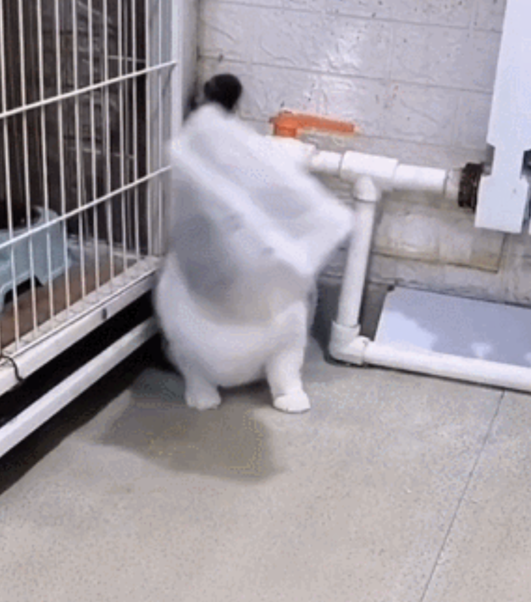 玩了不到十秒,麵包“應激”。沒過多久,一命歸西。