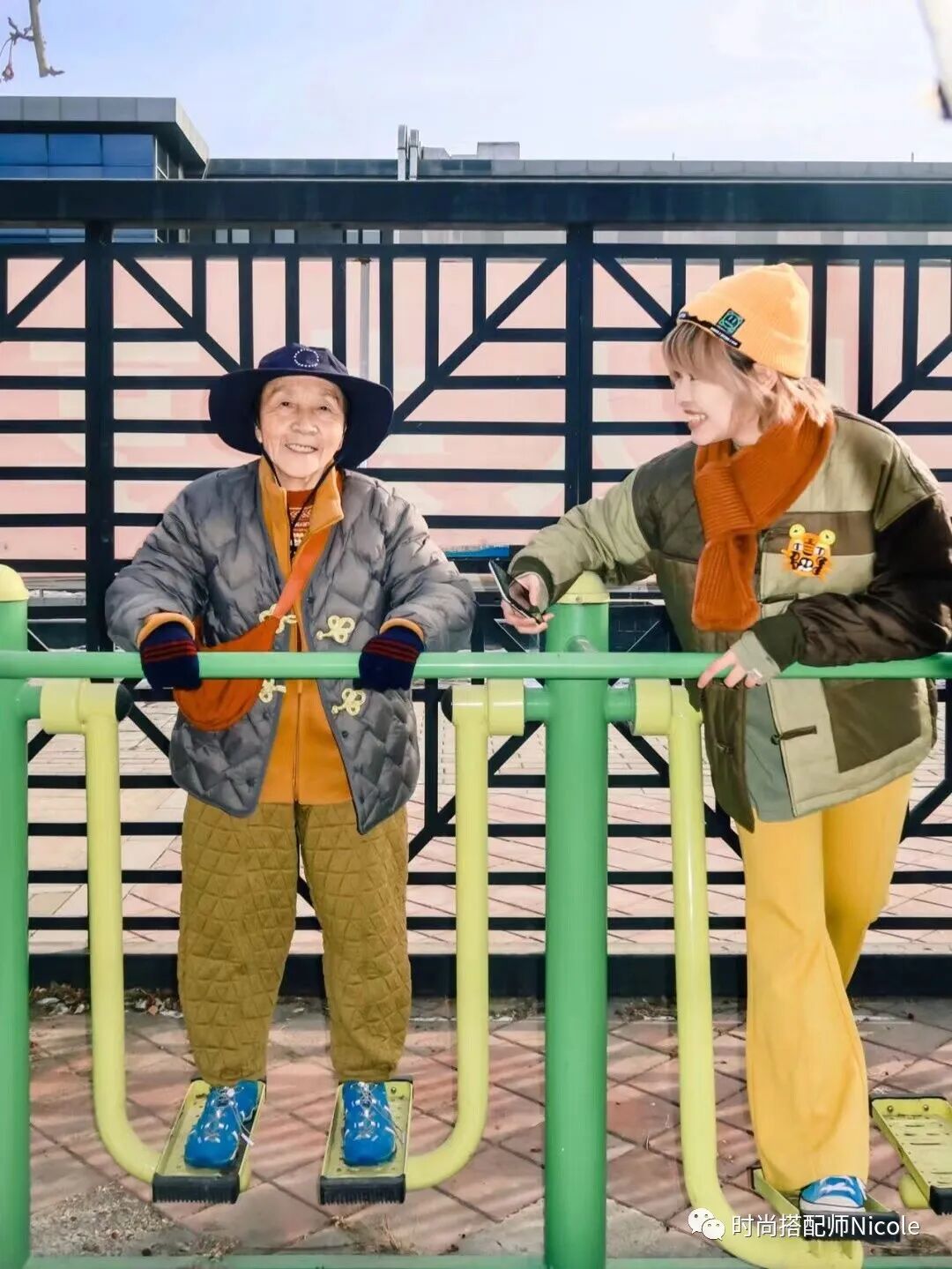 充滿童趣的連體衣也是奶奶的最愛,她還會搭配上針織帽和牛仔外套來增加看點,保暖的同時還透著說不出的“老頑童”感,說真的,奶奶這麼穿超酷的好嗎!