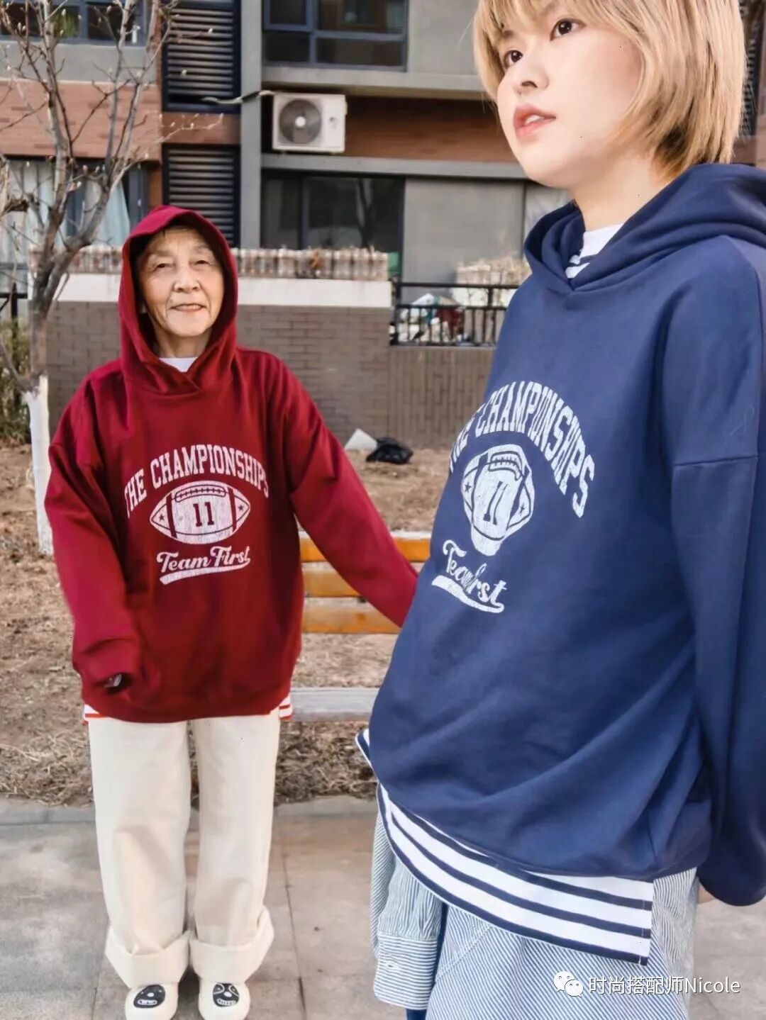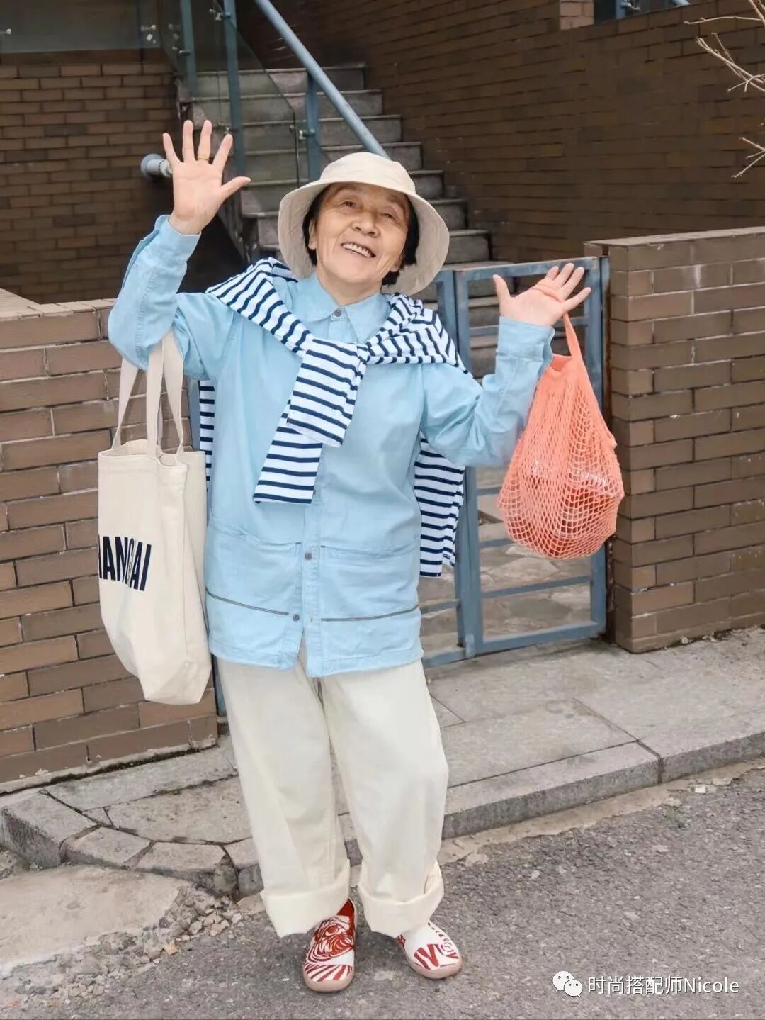 一般70多歲的奶奶,都不會嘗試年輕人的衛衣、條紋衫之類,怕被人說裝嫩,但是這個奶奶卻絲毫不理會,條紋衫、衛衣穿在她身上別有一番韻味,整個人都顯得潮氣蓬勃。