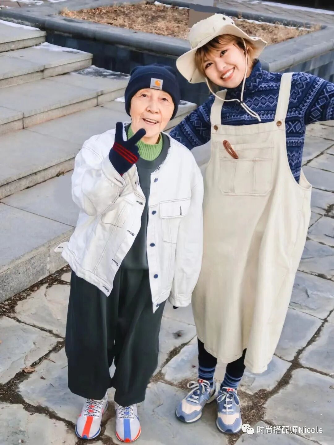 充滿童趣的連體衣也是奶奶的最愛,她還會搭配上針織帽和牛仔外套來增加看點,保暖的同時還透著說不出的“老頑童”感,說真的,奶奶這麼穿超酷的好嗎!