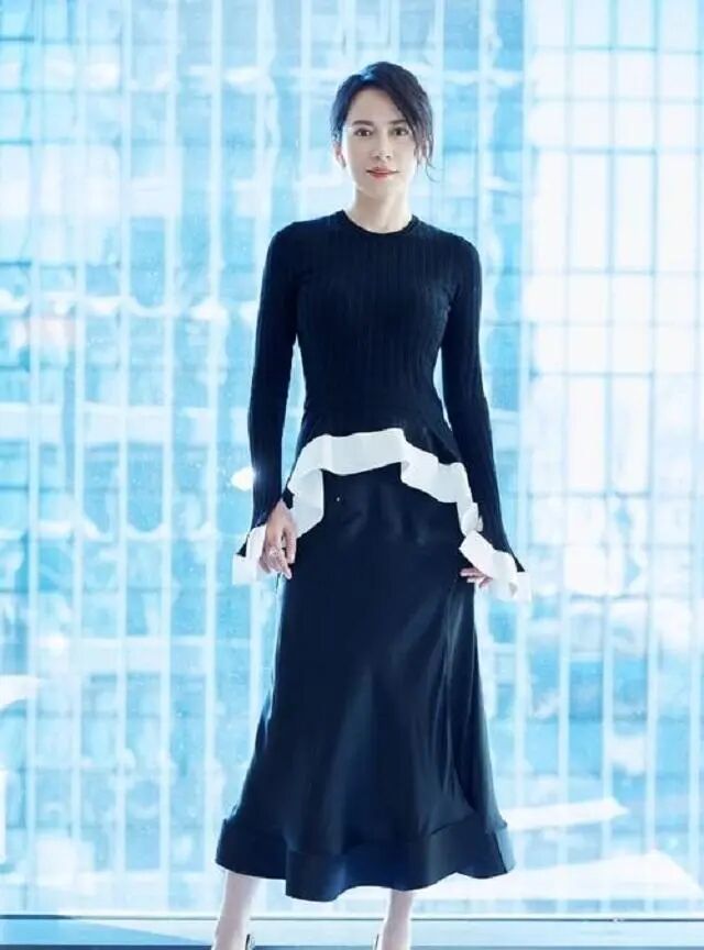 俞飛鴻的長裙也可真不少,這套修身針織連衣裙也是被她穿出了優雅又知性的感覺。