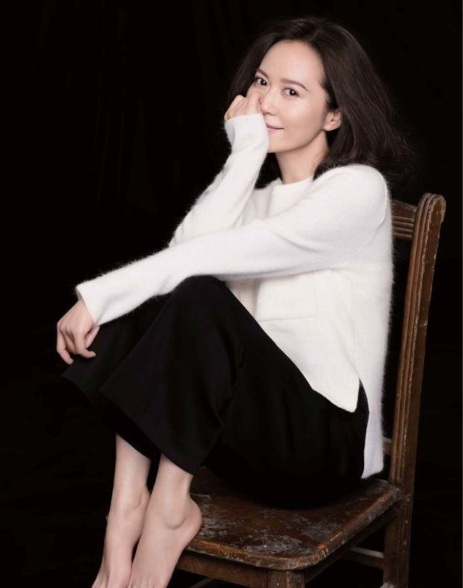 在簡約風格里,同樣也有俞飛鴻的影子。這套搭配可以說是十分簡約了,顏色就只有黑白兩色,黑色代表神秘,白色代表純潔。一件白色的絨毛毛衣的搭配讓人看起來是非常舒適又溫柔的,黑色的闊腿褲搭配也是讓整體顯得輕鬆又沉穩。整體看來真的是非常休閒舒適的搭配了。