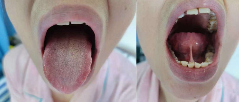 那從這個舌象上看,她整個的舌下絡是比較弱的,基本是一個典型的氣血不足,舌下是一種紅的顏色,提示這個病人存在陰虛。我們再看正面的舌象,淡紅舌偏瘦,而且偏暗,這種顏色一看就是少陽經的舌象,然後它是一個瓦片舌,而且整個是肝血不足,心肺的血都是不足的。