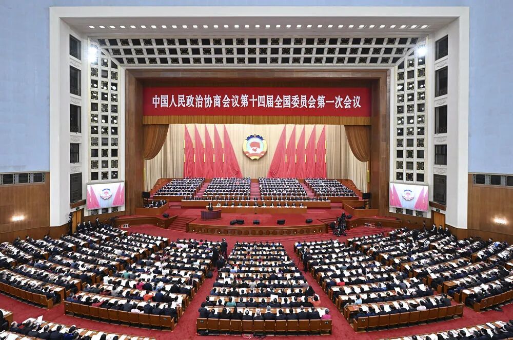 3月4日,中國人民政治協商會議第十四屆全國委員會第一次會議在北京人民大會堂開幕。新華社記者 翟健嵐 攝