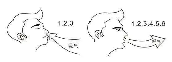 先閉嘴用鼻子吸氣默數“123”;再把嘴唇縮小做吹笛或口哨樣緩慢呼氣,默數“123456”。