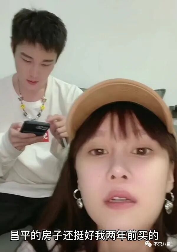 球球在鏡頭前神采奕奕地憧憬著兩人的同居生活,說著要給新家添置些櫃子和鍋碗瓢盆,不過說著這些,男友在後邊玩手機並沒有搭茬。