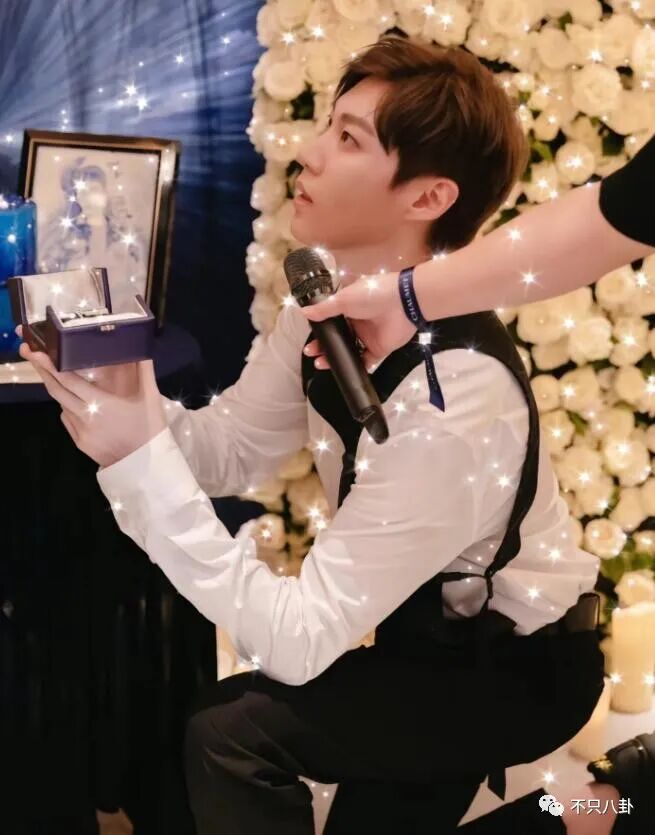 求婚現場也有被精心佈置過,滿屏的白玫瑰和蠟燭,浪漫唯美。