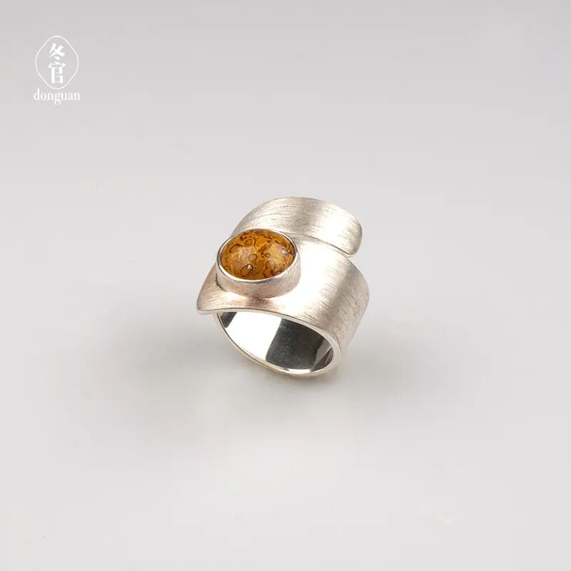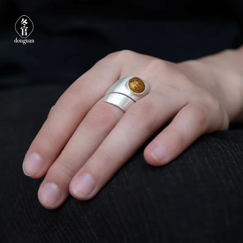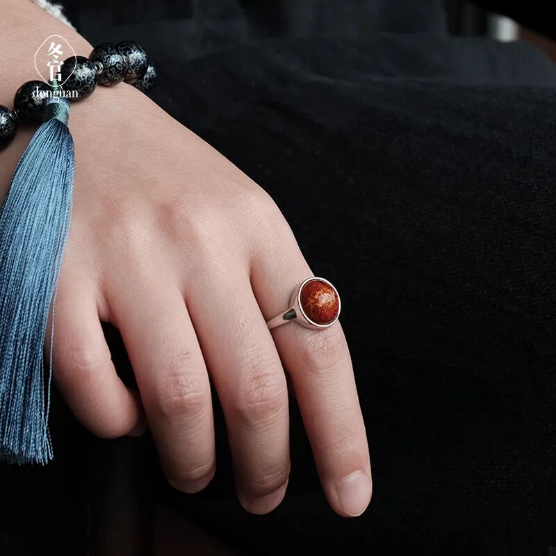 採用復古做舊手工銀戒,配上古樸渾厚的漆珠,整體沉穩端莊,又很有韻味。
