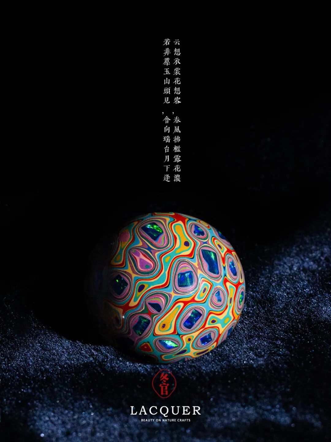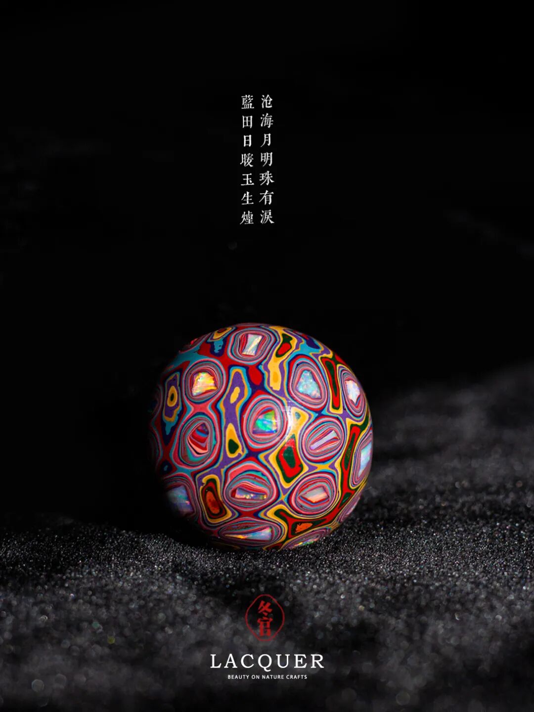 因為歐泊石英的獨特屬性,每顆漆珠在製作時都困難重重。僅打磨時間就是普通大漆製品的三四倍有餘。