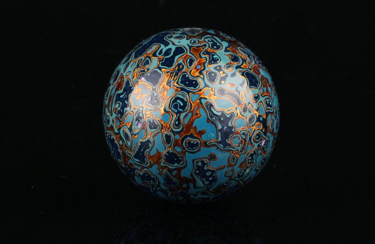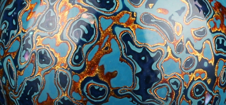 銀珠、石黃、特紅、藍靛、松煙等天然礦物質原料,在大漆的基底之上,不斷流淌變幻出美妙的圖案。