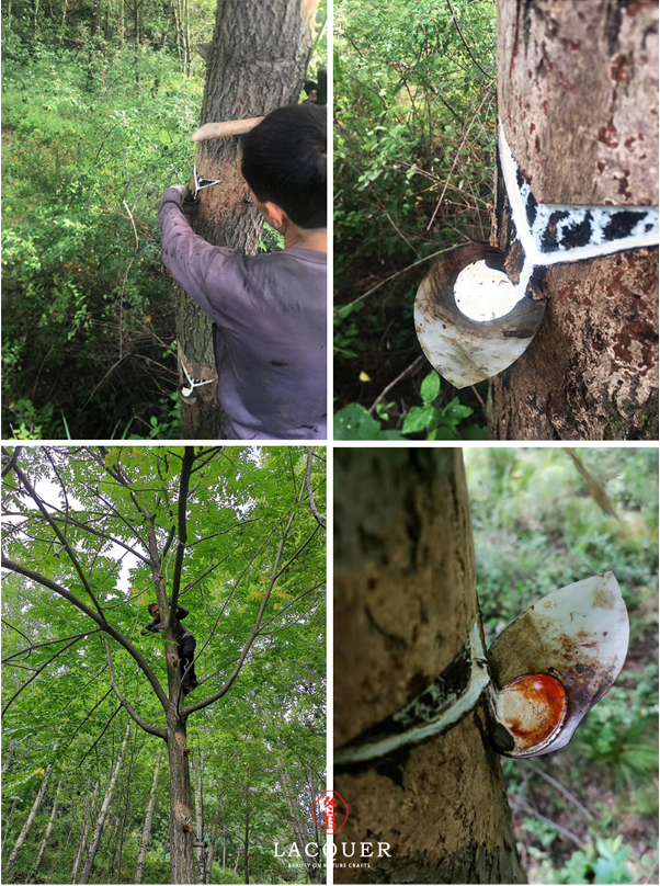 他們早出晚歸,找到合適的漆樹,再用特製的割漆刀劃開樹皮,用蚌殼或者樹葉做成的繭子接住漆樹流出的天然汁液,得到的便是珍貴的生漆。