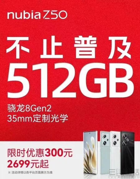 作為努比亞方面在去年年底推出的旗艦機型,Z50自亮相以來就憑藉著在產品端與性價比方面的出色表現,受到了眾多消費者的青睞。日前官方宣佈,努比亞Z50不止要普及512GB存儲空間、還要普及驍龍8 Gen2,將為其啟動限時促銷活動,最低僅需2699元即可入手。硬件配置上,Z50採用了一塊具備最高144Hz的刷新率與360Hz觸控採樣率、2400×1080分辨率的6.67英寸AMOLED屏幕,搭載第二代驍龍8主控,以及最高16GB+1TB的存儲組合,提供5000mAh電池、並支持最高功率達80W的有線快充。影像方面所配備的是1600萬像素前攝,以及由6400萬像素主攝+5000萬像素超廣角/微距副攝組成的後置雙攝模組。