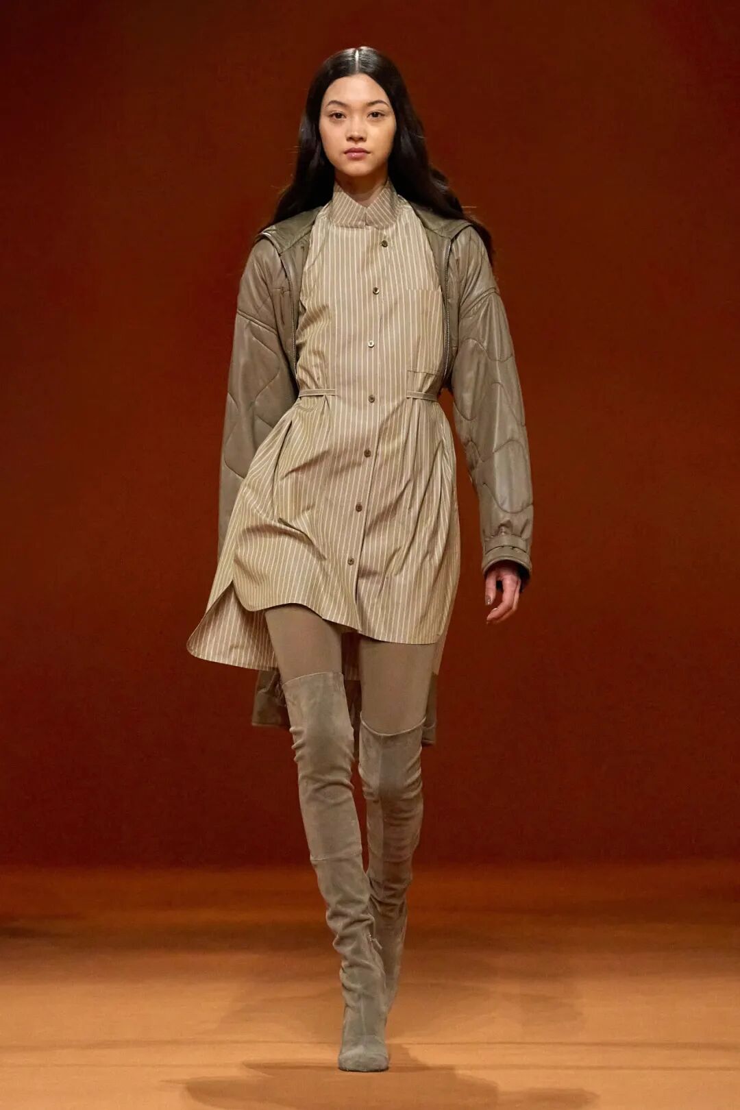 喜愛馬術休閒運動著裝的她,一直在為Hermes的女性們找尋圖案與面料之間相互平衡的傳統,但同時她也讓圖案剪裁和立體廓形剪裁能夠吸收時代帶來的新鮮血液——諸如科技面料、文化活力等風格要素,這一切就宛如女性的第二層肌膚,層層包裹,將其帶向一個全新的、兼具都市應用和戶外探索高度的未來女性著裝風格。