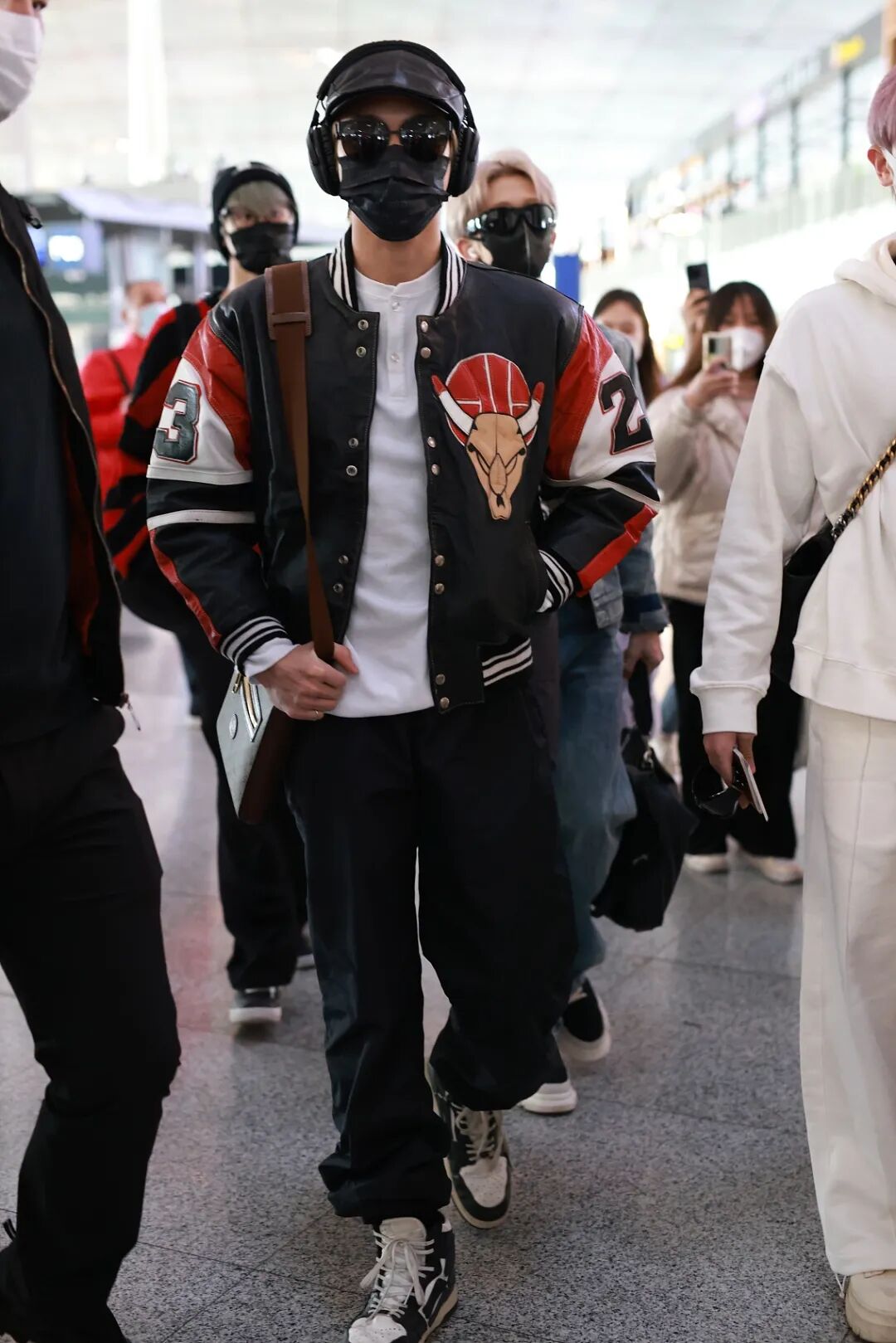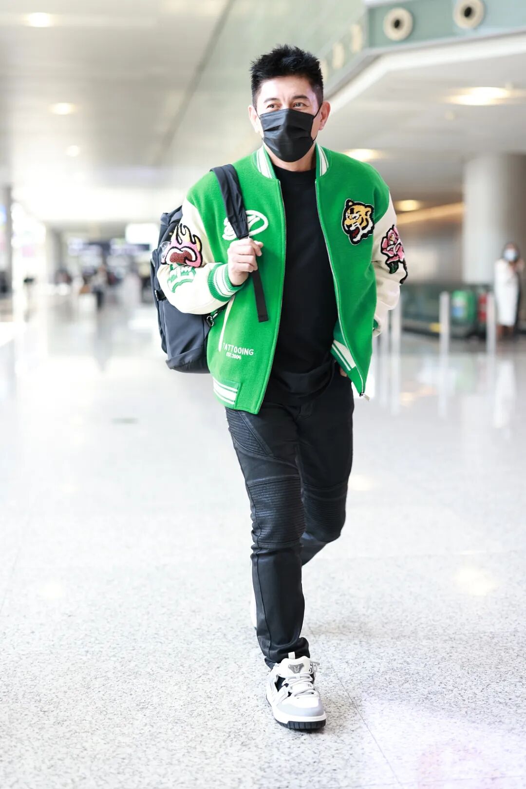 一堆紅中闖進來的“綠色”隆哥,棒球服上有火焰、花朵和老虎的刺繡,好“春意盎然”的單品哦!搭配雙肩包、牛仔褲和球鞋,隆哥的笑意裡滿是活力哇。