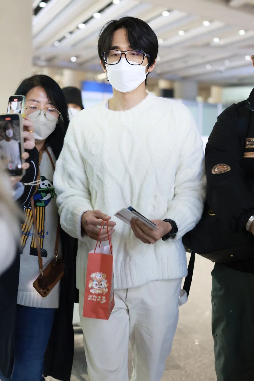 中分順毛+白毛衣+黑框眼鏡,百變本哥今天“飾演”的是初入高校的純情男大學生吧,看起來軟軟糯糯的,和他在熱播劇《光淵》裡飾演的“裴溯”反差好大!