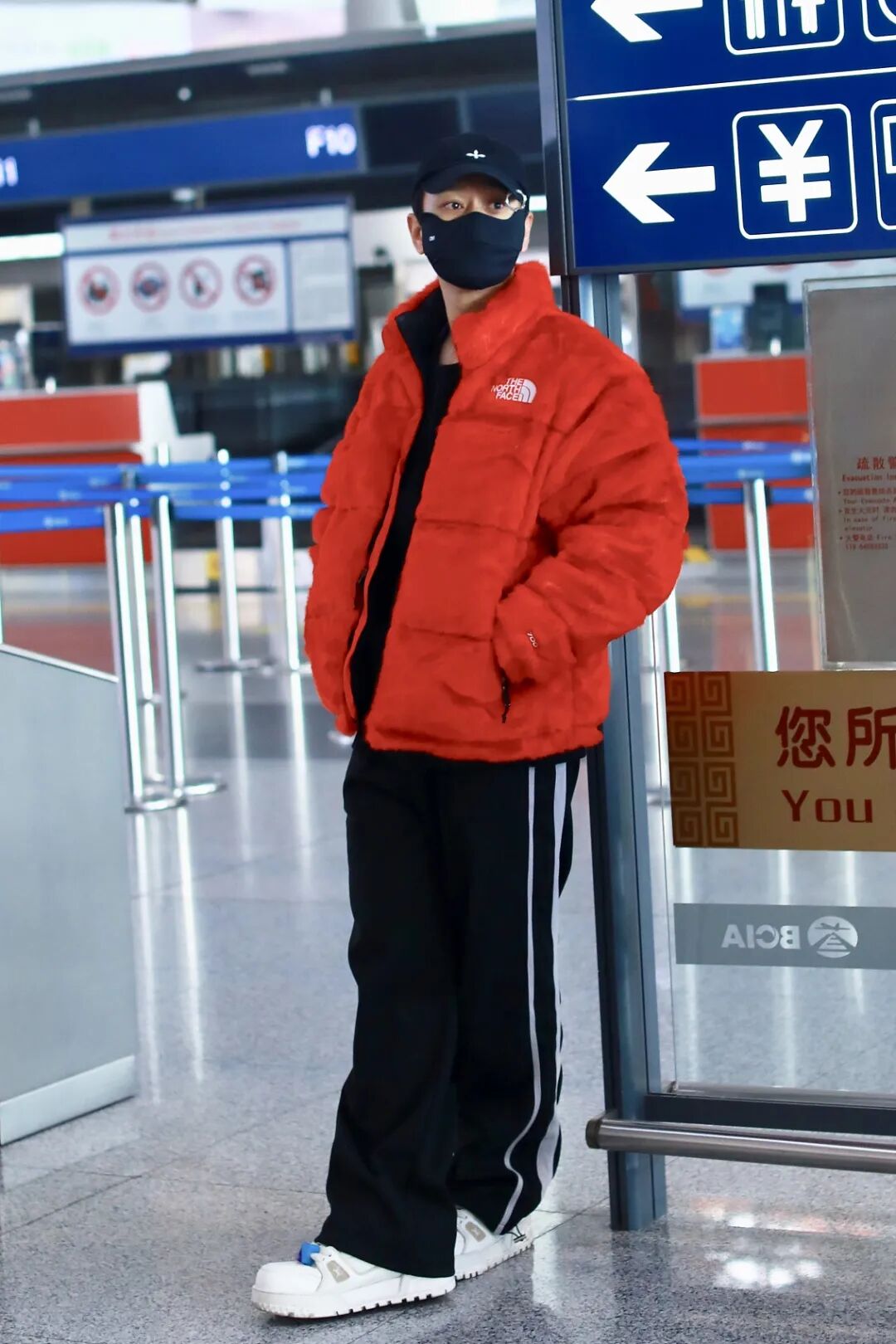 又是被曉明哥帥到的一天~從上數到這裡,已經是第三套紅黑配啦!不過曉明哥紅得更明顯,更休閒,搭配“大頭”球鞋化解寬大羽絨服可能帶來的“頭重腳輕”問題。